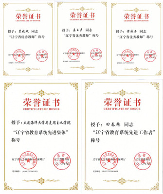 我校马克思主义学院荣获辽宁省教育系统先进集体,海洋法律与人文学院裴兆斌教授、水产与生命学院姜玉声教授、海洋科技与环境学院谭成玉教授荣获辽宁省优秀教师,教务处处长田春艳荣获辽宁省教育系统先进工作者。