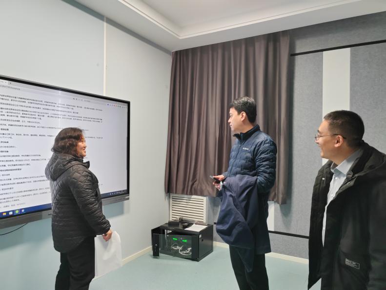 邵婧怡代表我校教师发展中心对王磊等人的到访表示欢迎。她全面介绍了学校教师发展中心机构设置、主要职能和人员构成,详细梳理了工作整体框架,介绍了近年来学校教师发展中心工作开展情况,总结了取得的成效和今后的发展思路。随后,邵婧怡陪同王磊一行参观了学校智慧教室和微课录播室,信息化工作办公室包琳介绍了近年来学校在现代教育技术资源建设方面的整体情况。