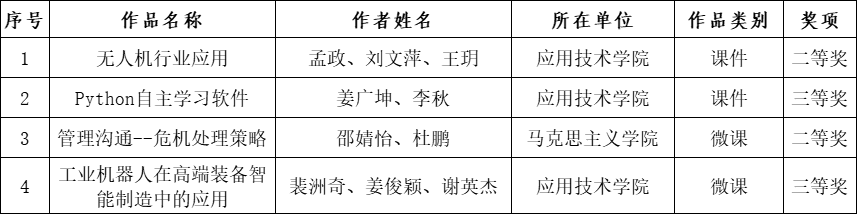近日,辽宁省教育厅下发了《关于公布第二十届辽宁省教育教学信息化交流活动评选结果的通知》。经过学院推荐、学校遴选、专家评议、网上公示等多个环节,我校推荐的《无人机行业应用》等四部作品,分获高等学校组课件和微课类别的二、三等奖。