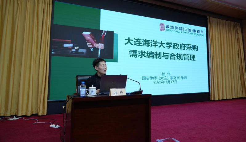 本次讲座特邀国浩律师(大连)事务所孙伟律师和学校国有资产与实验室管理处副处长张良担任主讲。