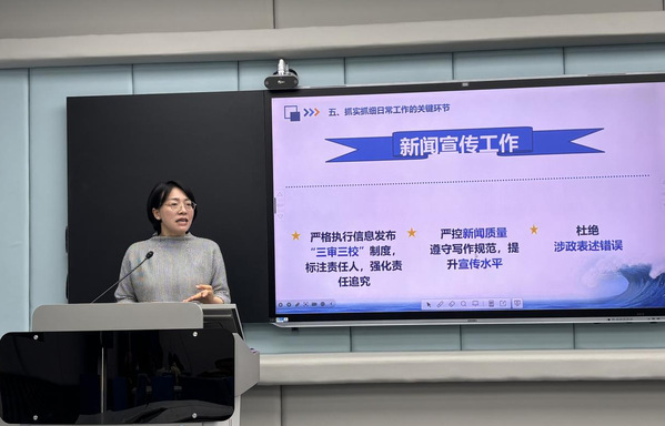 随后开展的专项培训,由党委宣传部副部长刘雪清主讲。她紧扣高校教职工履职尽责的核心准则与校园宣传思想工作的规范要求,立足一线教职工日常工作全场景,系统讲解了校园新闻宣传与信息发布的工作规范、课堂教学管理的核心准则、科研成果发布与学术交流的纪律要求、教材选用与建设的把关标准等关键内容,全面梳理了教职工日常工作中需严守的行为边界与工作底线。讲解内容贴合岗位实际,兼具指导性与实操性,帮助参训教师进一步明晰了岗位履职的规范要求,强化了责任意识与底线思维,为教师在日常工作中严守准则、规范履职,切实落实好立德树人根本任务提供了清晰的行动指引。